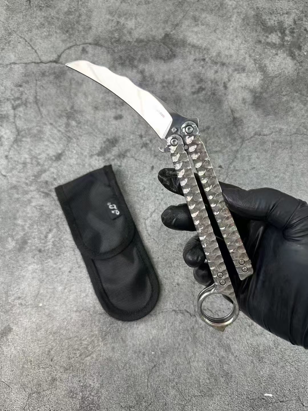 Balisong Karambit Eagle Claw Variation Schleudermesser Farbe Titanium Edition