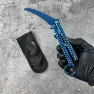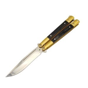 Dieses Balisong ist scharf und hat jede Menge Charakter. Die 23 cm lange Edelstahlklinge ist perfekt für den täglichen Gebrauch. Der Riegel verriegelt die Griffe sowohl im geöffneten als auch im geschlossenen Zustand und verhindert so ein versehentliches Öffnen oder Schließen. Leicht und witzig für Tricks und Flips.