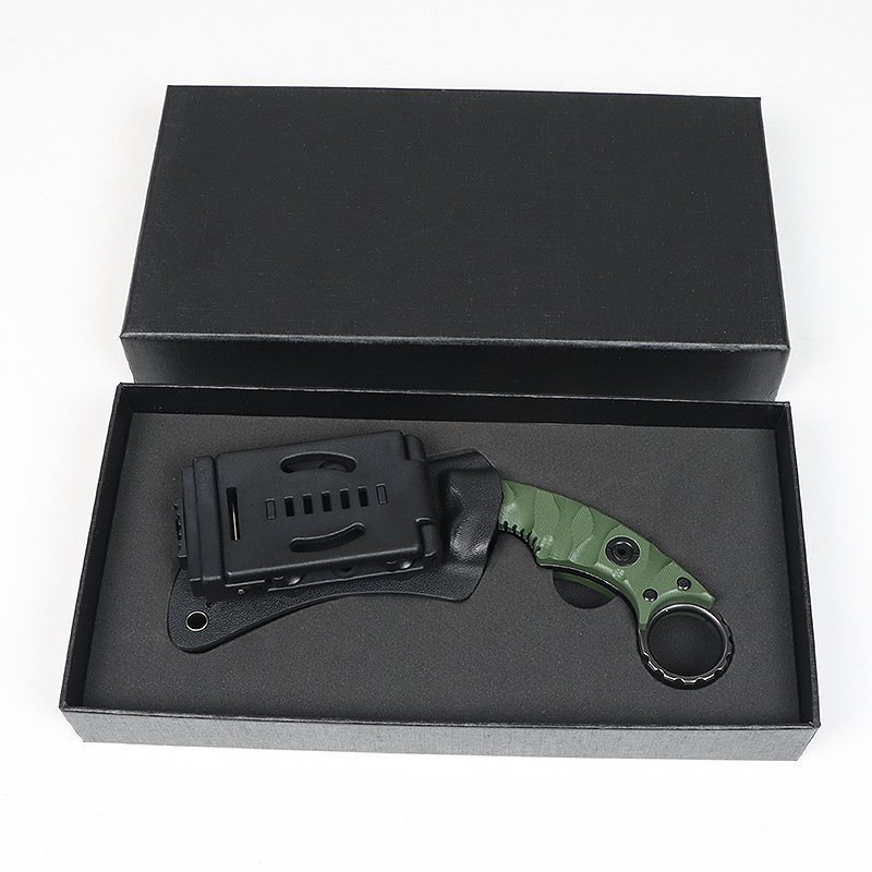 Karambit Knife Fixed Blade D2 Steel + G10 Handle Outdoor Claw Knife With Protective Cover Edc Tool-Green