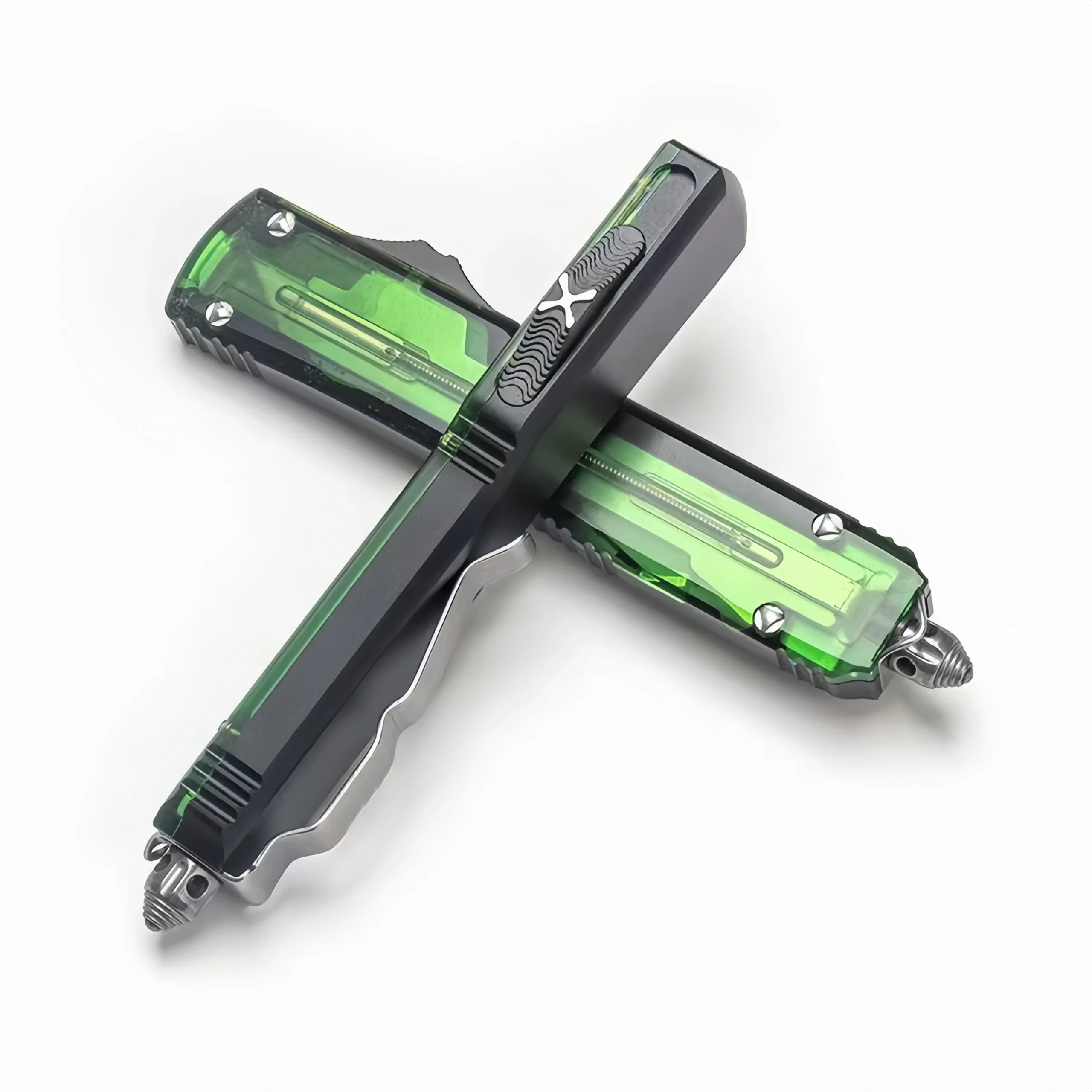 OTF-Messer mit grnem, durchscheinendem Griff